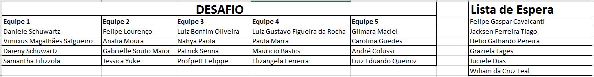E as equipes do Desafio Drunks 2016 são as seguintes: